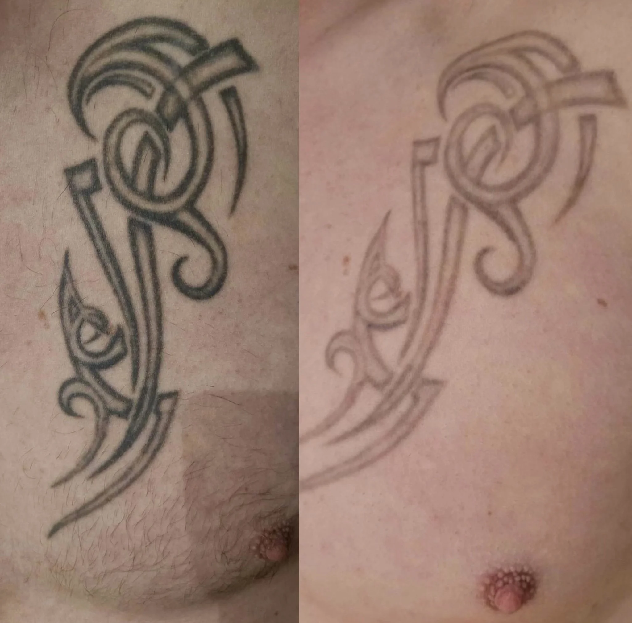Bemærk: Hvis din tatovering fra tatovørens side er lagt for dybt, kan det ses som ar, når vi fjerner farven fra tatoveringen.