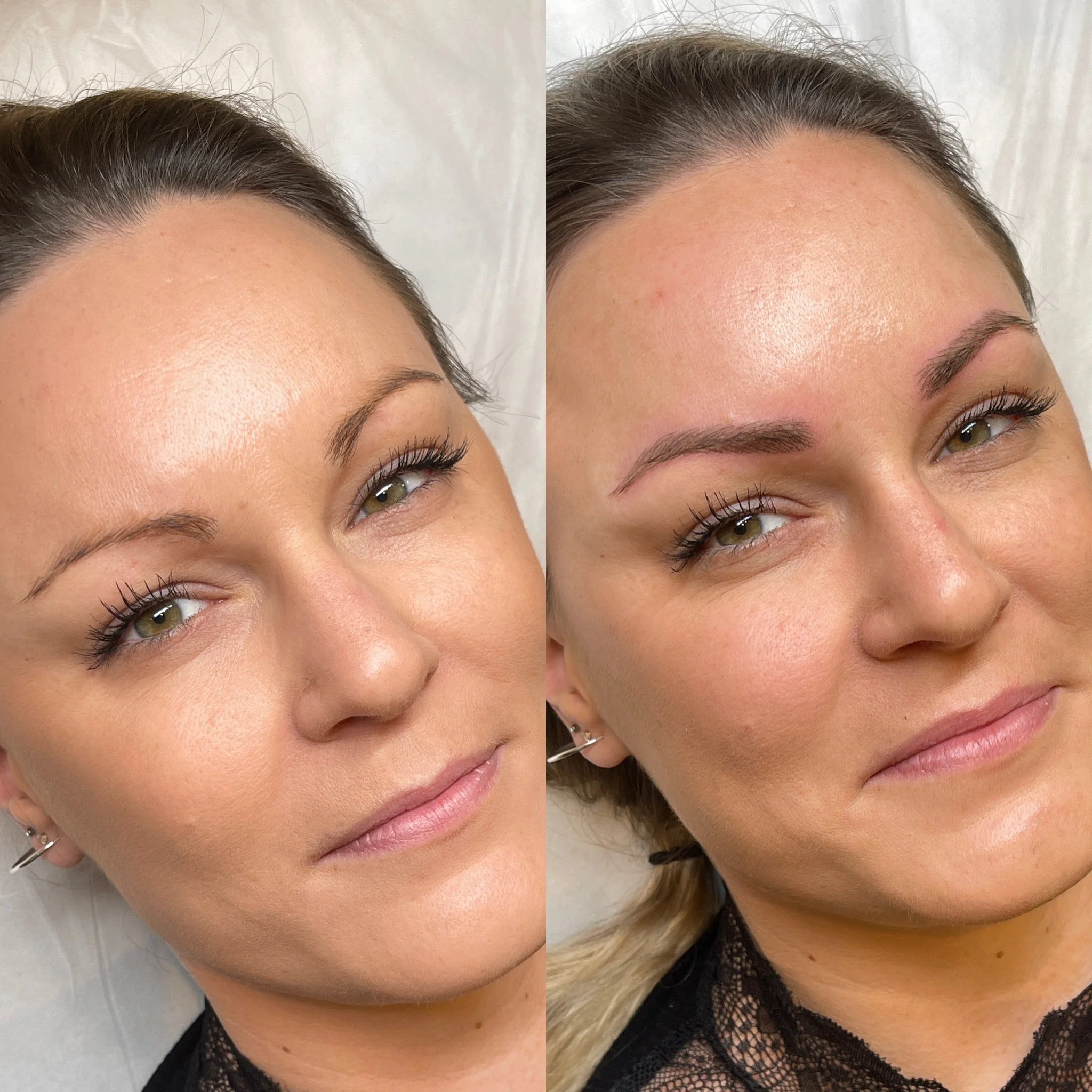 Microblading består af en masse små hårstrå, som tegnes ind i dine egne bryn, så brynene synes fyldigere, mere ensartede og med den perfekte form. Du opnår det bedste resultat, hvis du har en rimelig jævn fordeling af hår i dit naturlige bryn.