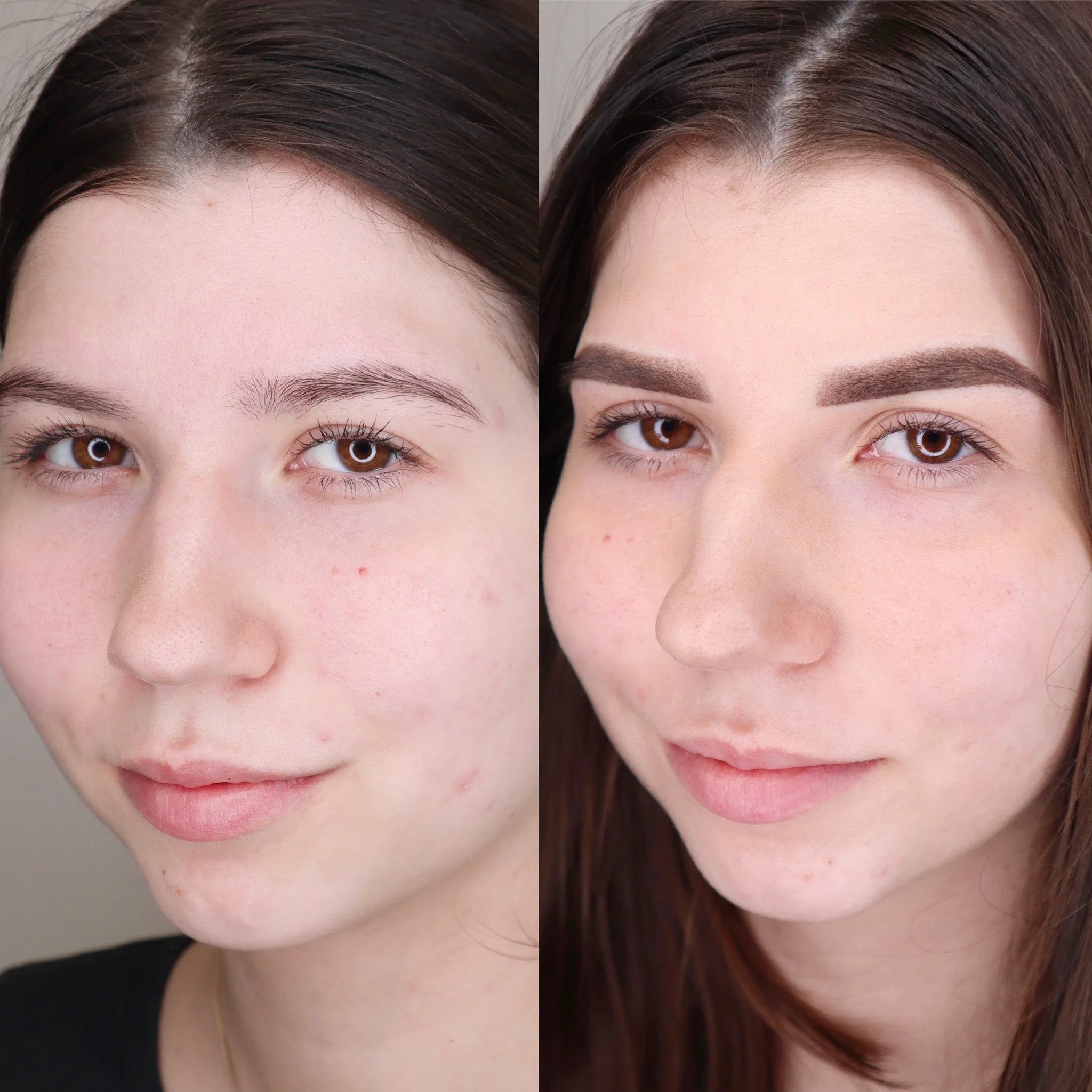 Ombre består af en formgivende skyggelægning af dit naturlige bryn, som starter let ind mod næsen og bliver mørkere mod enden af brynet. Du opnår et let pudder-agtigt optegnet bryn med en jævn farvelægning, i modsætning til hairstrokes.